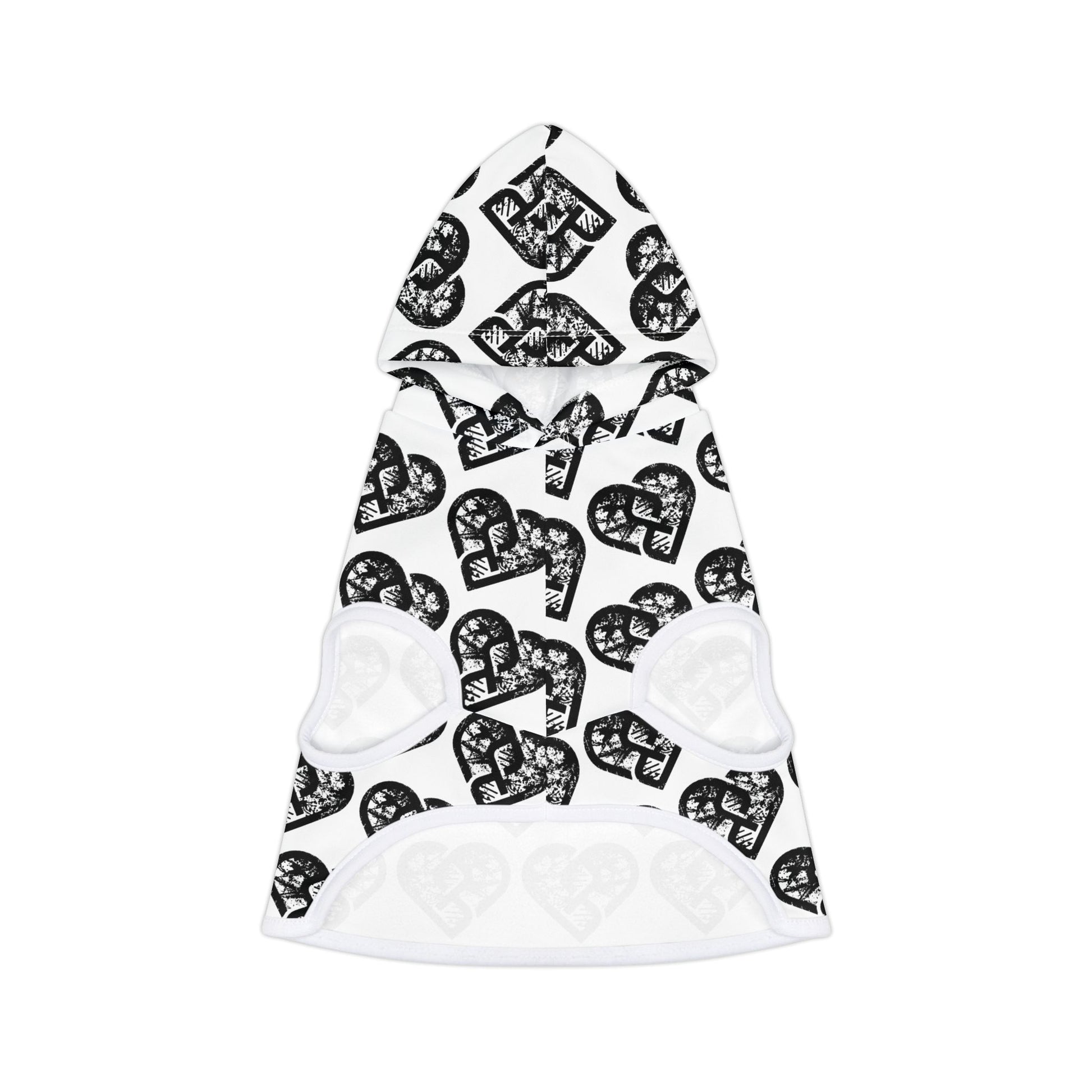 Heart Pattern Pet Hoodie — Black & White Grunge Hearts Dog Hoodie