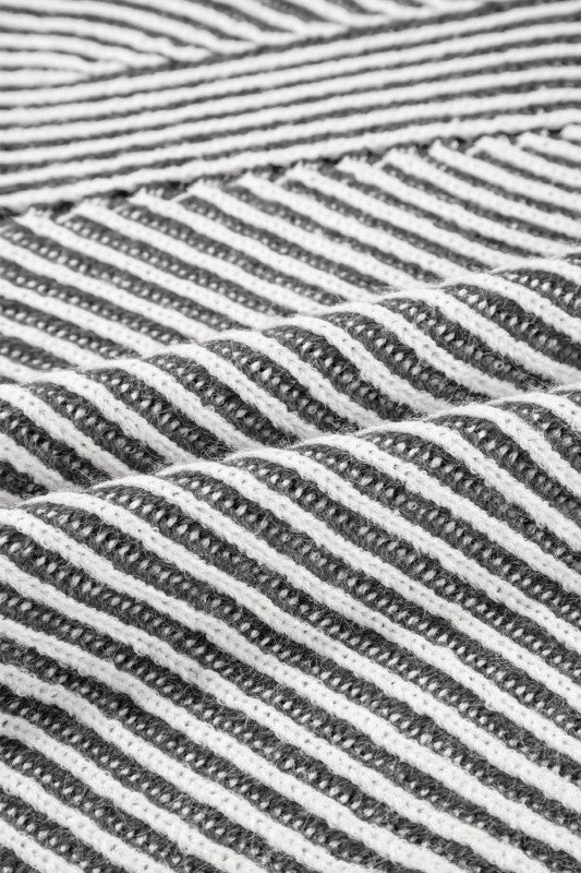 Stripe Ribbed Knit Boat Neck Sweater